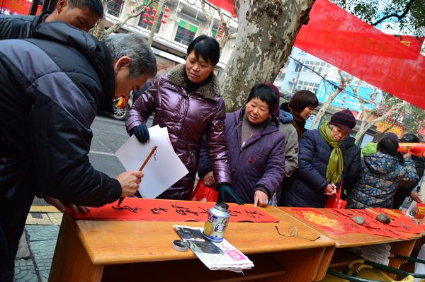 退休老黨員蘭延生、陳根松冒著嚴(yán)寒一大早來到了服務(wù)現(xiàn)場,在現(xiàn)場為市民們義務(wù)寫對聯(lián)、送對聯(lián),蘭老的字清秀大方,陳老的字遒勁有力,在一旁觀看的市民“嘖嘖”稱道,他們自覺排起了長隊(duì),耐心等待著兩老的“墨寶”,成為“黨員服務(wù)一條街上”的一大亮點(diǎn)。